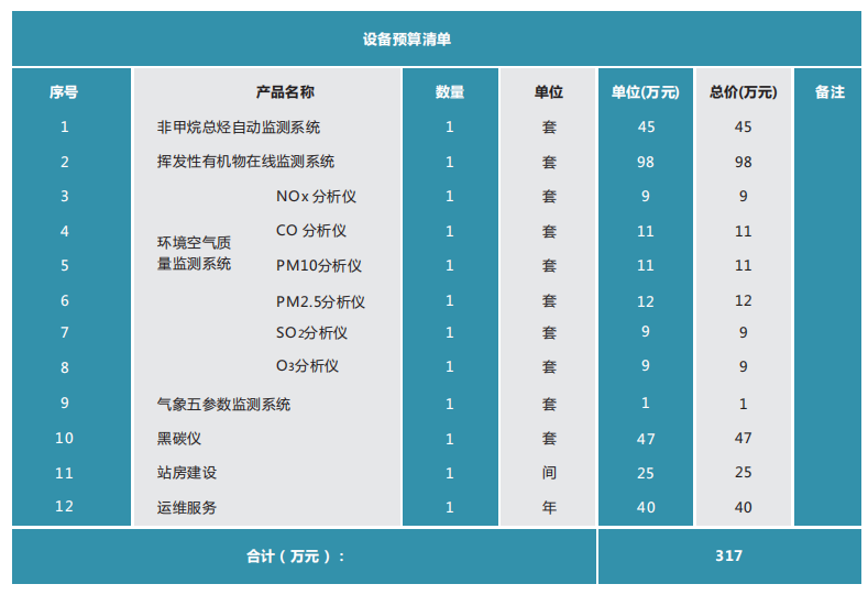 计划在我市建立 1 套公路大气环境自动监测站点站点,1 套港口大气环境自动监测站点,1 套机场大气环境自动监测站点站点, 1 套铁路货场大气环境自动监测站点。 1套公路站点配备设备具体内容见下表